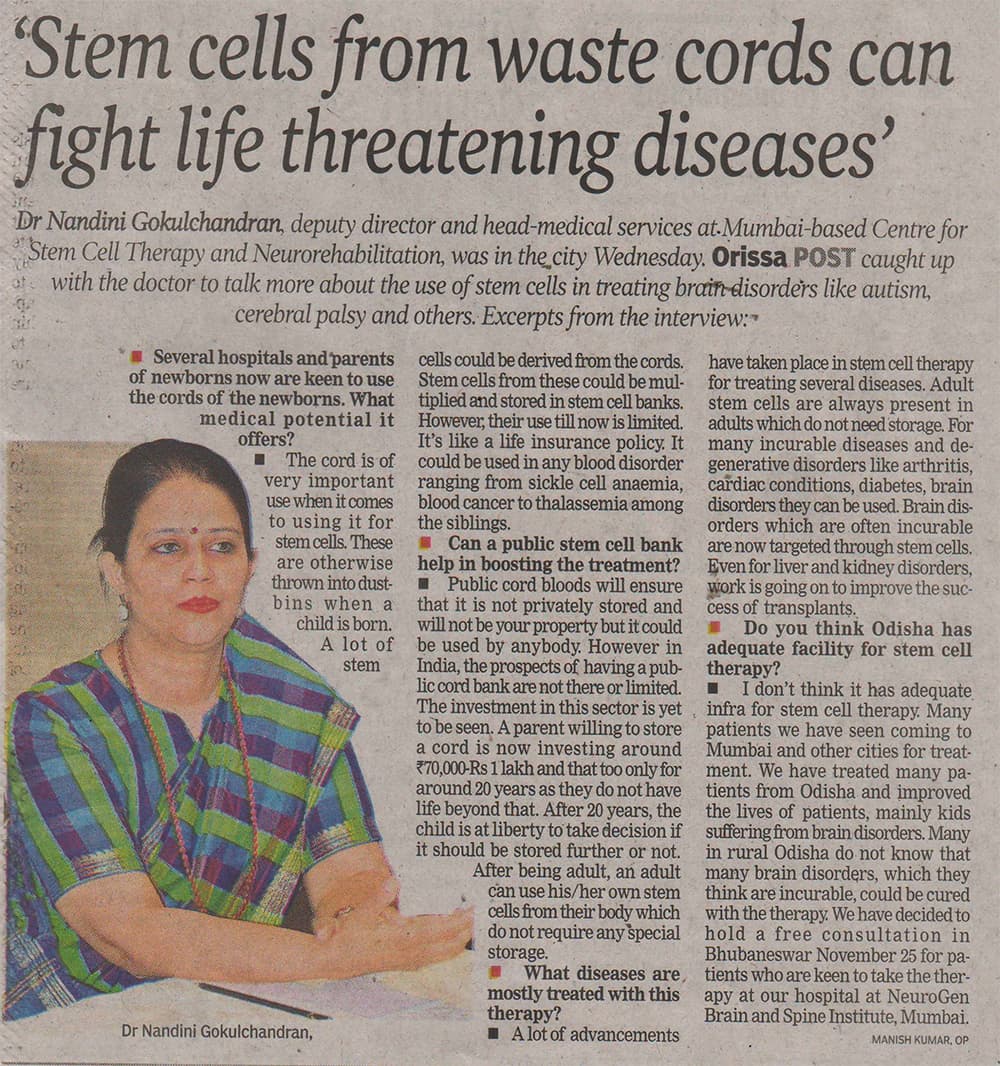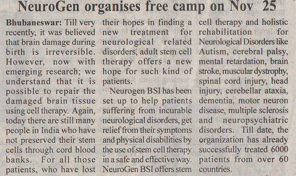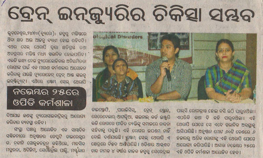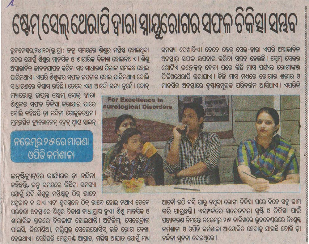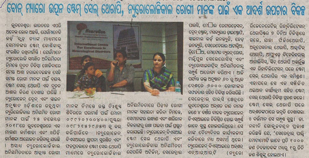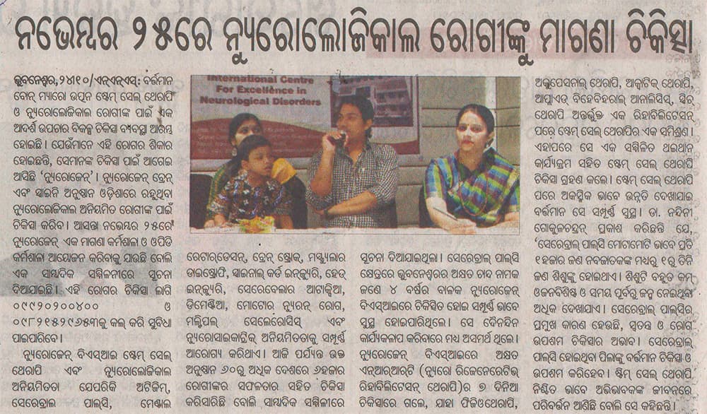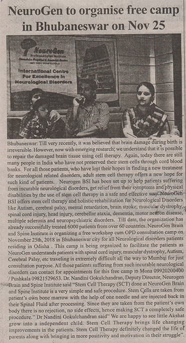 Akshat'a NeuroGen BSI'da üç tur hücre tedavisi uygulandı ve ardından iyileşmeler kaydedildi. Bhubaneswar'da düzenlenen basın toplantısında NeuroGen Beyin ve Omurga Enstitüsü Müdür Yardımcısı ve Tıbbi Hizmetler Başkanı Dr. Nandini Gokulchandran şunları söyledi: "Serebral palsinin her bin çocuktan yaklaşık bir ila üçünü etkilediği bilinmektedir. Çok düşük kilolu veya prematüre doğan bebeklerde görülme sıklığı çok daha yüksektir. Serebral palsinin nedenlerinin çoğunun spesifik, iyileştirici tedavileri yoktur. Bununla birlikte, serebral palsili çocuklarda tedavi edilebilen veya önlenebilen birçok tıbbi sorun mevcuttur. Tedavinin ilk aşamasında, tercihen nörogelişimsel bozukluklar konusunda deneyimli bir çocuk doktoru, bir nörolog (veya başka bir nöroloji uzmanı), bir ruh sağlığı uzmanı, bir ortopedi cerrahı, bir fizik tedavi uzmanı, bir konuşma terapisti ve bir ergoterapistten oluşan disiplinler arası bir ekip yer alır. Ekibin her bir üyesinin, etkilenen çocuğun bakımında önemli ve bağımsız katkıları vardır. Bu tedavi seçenekleri bu hastaların yaşam kalitesini artırmaya yardımcı olsa da, sorunu temelinden çözmemektedir. Modern tıp ve araştırmalar, serebral palside görülen feci etkileri azaltmak için kök hücrelerin potansiyel kullanımına birlikte ışık tutmuştur."