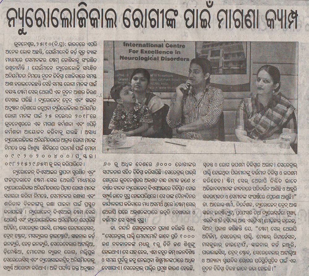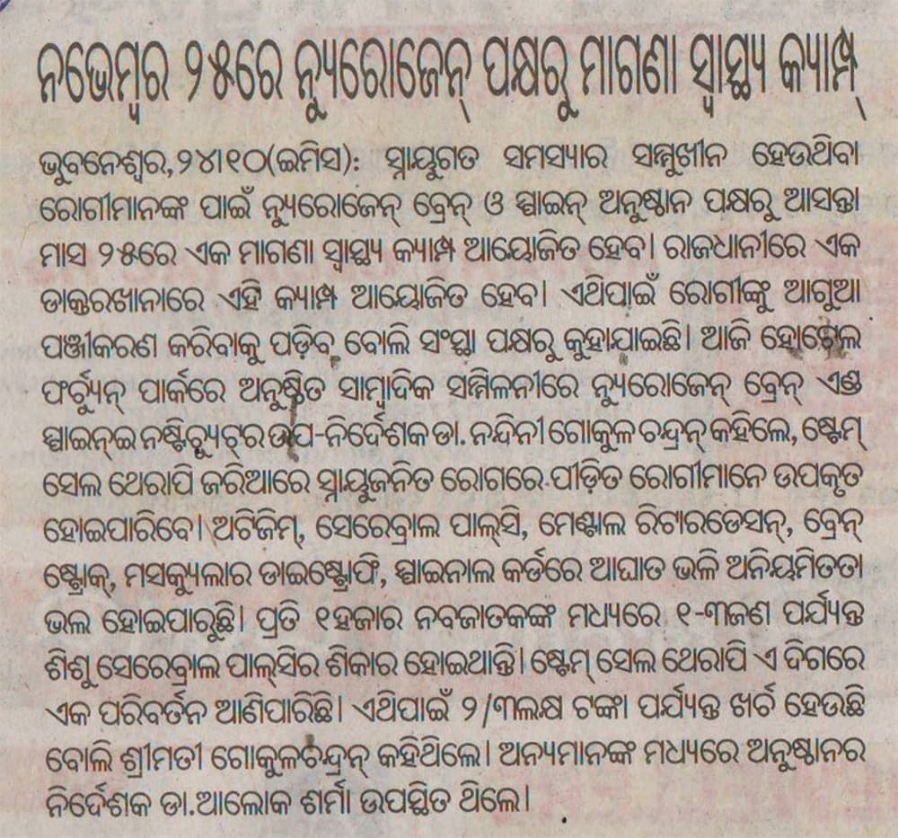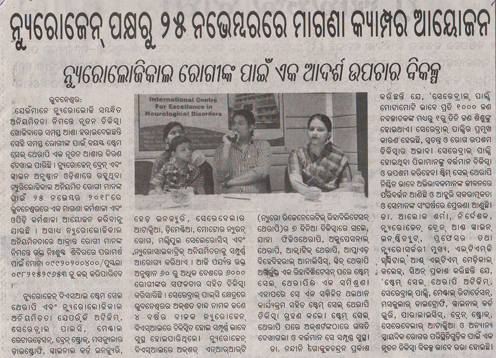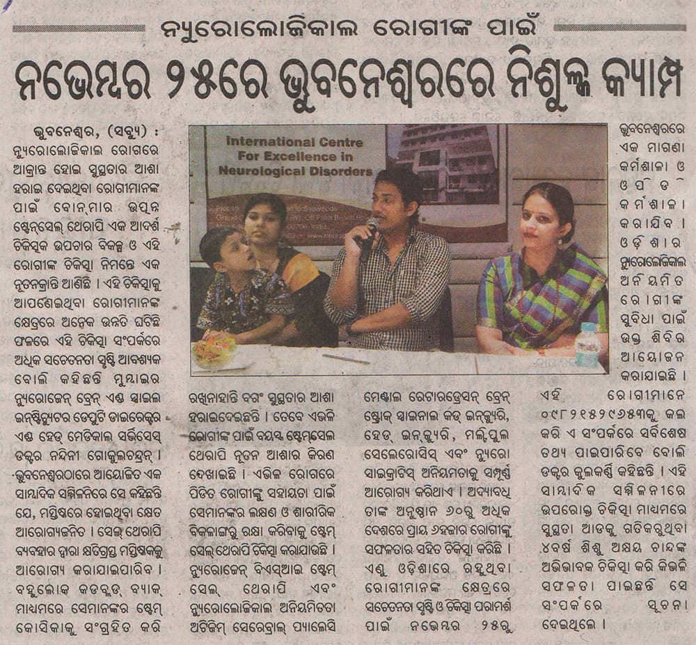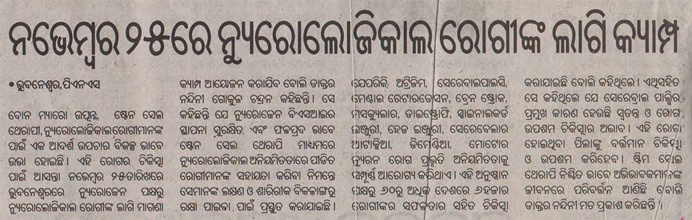 Akshat'a NeuroGen BSI'da üç tur hücre tedavisi uygulandı ve ardından iyileşmeler kaydedildi. Bhubaneswar'da düzenlenen basın toplantısında NeuroGen Beyin ve Omurga Enstitüsü Müdür Yardımcısı ve Tıbbi Hizmetler Başkanı Dr. Nandini Gokulchandran şunları söyledi: "Serebral palsinin her bin çocuktan yaklaşık bir ila üçünü etkilediği bilinmektedir. Çok düşük kilolu veya prematüre doğan bebeklerde görülme sıklığı çok daha yüksektir. Serebral palsinin nedenlerinin çoğunun spesifik, iyileştirici tedavileri yoktur. Bununla birlikte, serebral palsili çocuklarda tedavi edilebilen veya önlenebilen birçok tıbbi sorun mevcuttur. Tedavinin ilk aşamasında, tercihen nörogelişimsel bozukluklar konusunda deneyimli bir çocuk doktoru, bir nörolog (veya başka bir nöroloji uzmanı), bir ruh sağlığı uzmanı, bir ortopedi cerrahı, bir fizik tedavi uzmanı, bir konuşma terapisti ve bir ergoterapistten oluşan disiplinler arası bir ekip yer alır. Ekibin her bir üyesinin, etkilenen çocuğun bakımında önemli ve bağımsız katkıları vardır. Bu tedavi seçenekleri bu hastaların yaşam kalitesini artırmaya yardımcı olsa da, sorunu temelinden çözmemektedir. Modern tıp ve araştırmalar, serebral palside görülen feci etkileri azaltmak için kök hücrelerin potansiyel kullanımına birlikte ışık tutmuştur."