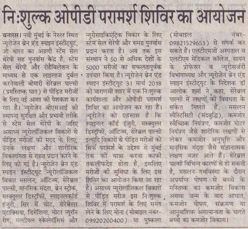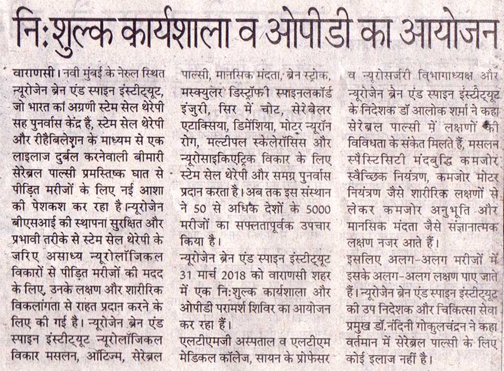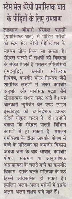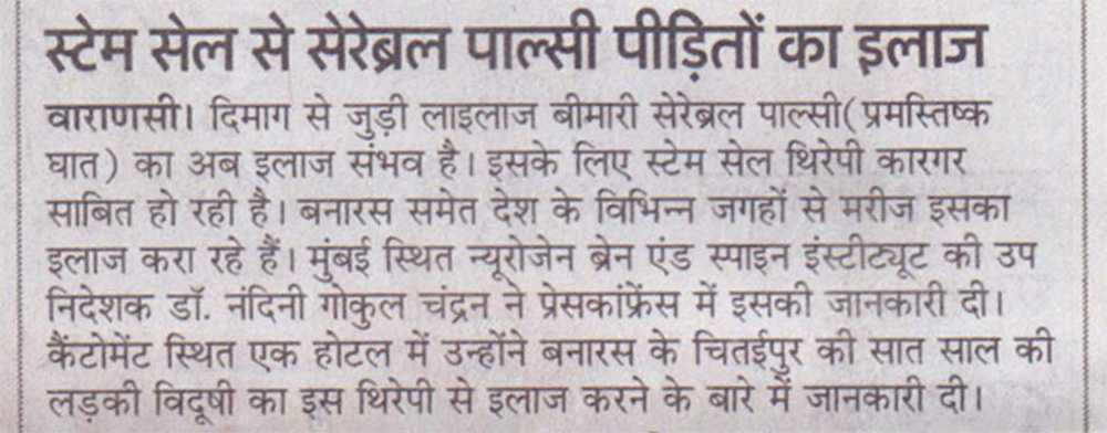 Vidushi'ye yurtdışında bir doktor da gösterildi ve o da 'Botox' ve diğer çeşitli allopatik ilaçlar önerdi. Bu, Serebral Palsi'deki spastisite için ideal olarak geleneksel bir tedavi yaklaşımıdır. Ancak babası Vidushi üzerinde bu tür tedavilere devam etmeyi kabul etmedi. Ayurvedik veya Homeopatik ilaçları da tercih etmemeye karar verdi. Bilgisini daha da geliştirmek için yeterince uyanıktı ve internet aracılığıyla Hücre Terapisi ile karşılaştı. NeuroGen Beyin ve Omurga Enstitüsü'nü ziyaret etti ve burada 2016 yılında Dr. Alok Sharma ve Dr. Nandini Gokulchandran ile tanıştı. Onlara danıştıktan sonra kök hücrelerin gücüne güven duymaya başladı. "Dr. Alok Sharma ve Dr. Nandini Gokulchandran bize Vidushi'nin tedavisinde yeni bir ufuk gösterdi. Artık kızımın yakında yürüyeceğinden emindim" dedi.